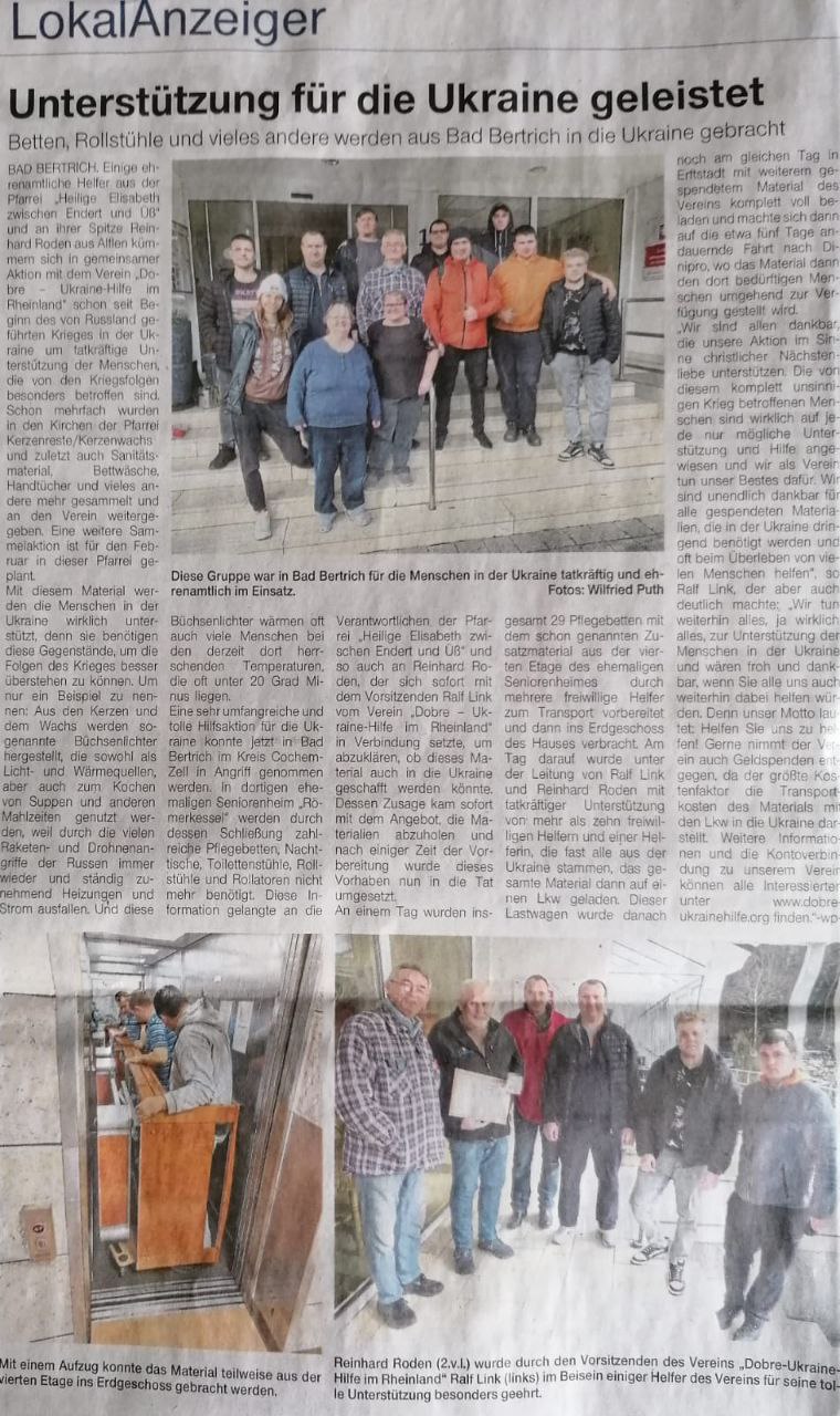 Dringend benötigte Hilfsmittel aus Bad Bertrich in die Ukraine gebracht